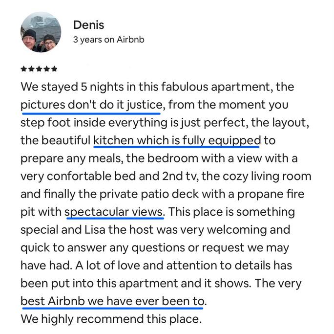 A private mountain suite perched above the city and overlooking the Salish Sea. You’ll enjoy the morning sun as it rises over the ocean and city lights as you unwind at night. ★“The pictures do not do justice for how amazing the place & view is!” -Kylene ☞ 646ft² mountain suite w/ 10’ ceilings ☞ Nespresso, French Press & drip coffee ☞ Blackout blinds in bedroom ☞ Private patio w/ fire pit ☞ In-suite washer + dryer ☞ Fully equipped kitchen ☞ Heated Bathroom flr ☞ 250 Mbps wifi ☞ 55” Smart TV